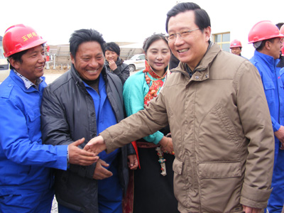 在離開項(xiàng)目工地前,強(qiáng)衛(wèi)書記和在場的水電干部職工一一握手。他拉著青海水電集團(tuán)玉樹電力公司(玉能電力開發(fā)公司)總經(jīng)理徐涌同志的手親切地說:“我代表省委、省政府向公司干部職工表示藏歷新年的問候和祝愿,同時(shí)也衷心地希望你們繼續(xù)發(fā)揚(yáng)和衷共濟(jì)、不怕困難、頑強(qiáng)拼搏的精神,繼續(xù)做好災(zāi)后重建保電工作”。同時(shí), 他還向該公司贈(zèng)送慰問金20000元。