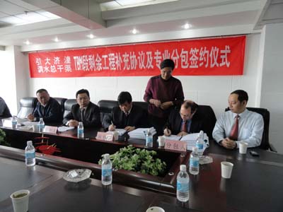 受青海水電集團董事長唐增科的委托,副總經(jīng)理吳世周與中鐵隧道股份公司簽署了調(diào)水總干渠TBM段剩余工程補充協(xié)議,中鐵隧道股份公司與CMC公司簽署了調(diào)水總干渠TBM段剩余工程專業(yè)分包合同。總承包人、分包人代表分別在儀式上發(fā)言,表示將把握好機遇,認真履行義務(wù),全面落實分包合同,盡快擺脫TBM施工所處的困境,開創(chuàng)工程建設(shè)的新局面,不辜負項目業(yè)主的期望,為青海經(jīng)濟社會發(fā)展做出貢獻。簽約儀式的舉行,標(biāo)志著調(diào)水總干渠剩余工程建設(shè)進入克難攻堅的關(guān)鍵階段。依照合同約定,CMC公司將在3月中旬進場開展交接和設(shè)備改造等工作,為TBM恢復(fù)掘進做好準(zhǔn)備。