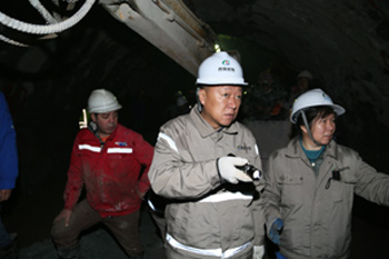 慰問期間,集團(tuán)領(lǐng)導(dǎo)一行乘坐軌道車深入到距離洞口7.4km的輸水隧洞出口段施工現(xiàn)場(chǎng),仔細(xì)察看了TBM維修當(dāng)前開挖掌子面巖性和主洞、旁通洞第三段人工鉆爆施工狀況,要求參建各方加強(qiáng)溝通協(xié)調(diào),縝密安排施工計(jì)劃,強(qiáng)化現(xiàn)場(chǎng)管理,高度重視安全工作,切實(shí)加快施工進(jìn)度和TBM改造工作,合理規(guī)劃,統(tǒng)籌兼顧,為TBM盡早啟動(dòng)掘進(jìn)創(chuàng)造條件。