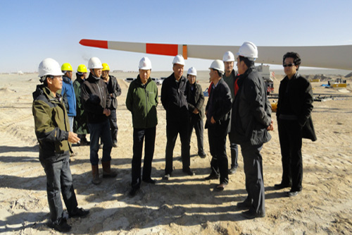 在茫崖一期20兆瓦風(fēng)電場(chǎng)建設(shè)工地,集團(tuán)領(lǐng)導(dǎo)察看了已完成吊裝的首臺(tái)風(fēng)機(jī),并聽(tīng)取了茫崖風(fēng)電有限公司總經(jīng)理支永新和工程承包方代表關(guān)于施工組織、設(shè)備安裝和調(diào)試等情況的介紹,觀看了第二臺(tái)風(fēng)機(jī)機(jī)艙的吊裝施工,檢查了正在施工中的110KV變電所、高壓線路、綜合樓。王海青、姚鐵兵代向建設(shè)一線的同志們贈(zèng)送了慰問(wèn)品,對(duì)他們的辛勤付出表達(dá)了敬意和感謝。王總經(jīng)理指出,茫崖風(fēng)電場(chǎng)2.5兆瓦風(fēng)電機(jī)組是目前省內(nèi)海拔最高、單機(jī)容量和葉輪直徑最大的機(jī)組,也是青海水電集團(tuán)獨(dú)立開(kāi)發(fā)的第一個(gè)風(fēng)電項(xiàng)目,對(duì)集團(tuán)新能源業(yè)務(wù)的發(fā)展具有重大意義。各參建單位要高度重視,同心協(xié)力,克服自然條件艱苦等不利因素,在確保安全和質(zhì)量的前提下,加快工程進(jìn)度,并及時(shí)辦理并網(wǎng)許可等前期手續(xù),爭(zhēng)取早日投產(chǎn)發(fā)電。