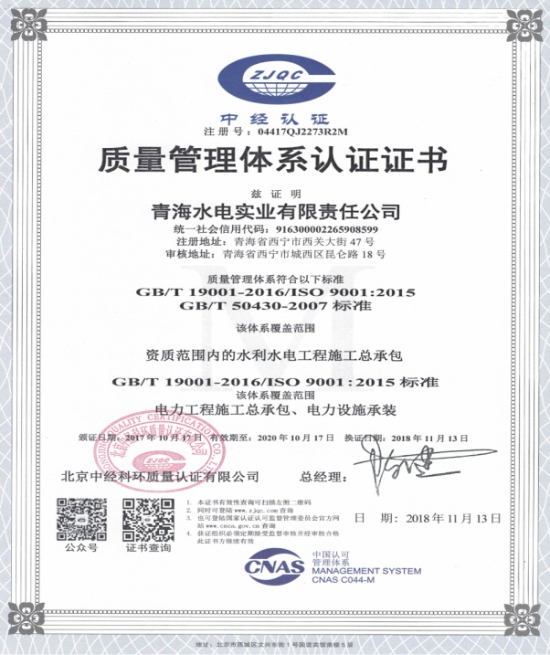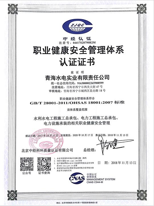 11月19日水電實業(yè)公司順利通過質(zhì)量、環(huán)境、職業(yè)健康安全管理“三體系認(rèn)證”年度監(jiān)督審核,并取得擴項后的認(rèn)證證書。