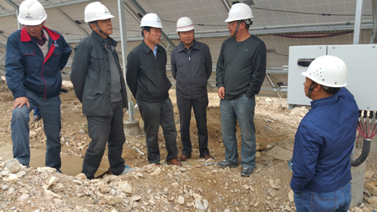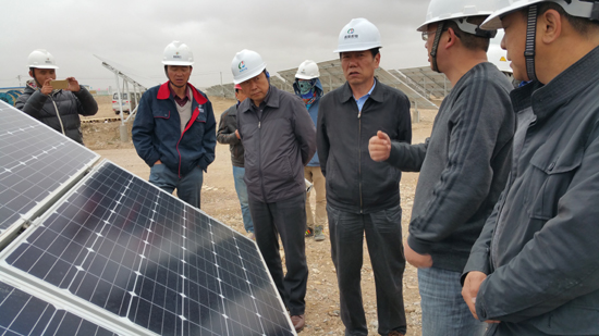 當(dāng)天上午,唐增科一行來到位于德令哈市區(qū)西北約20公里的聚能電力一期40光瓦并網(wǎng)光伏電站建設(shè)現(xiàn)場,察看了工程總體布置和當(dāng)前形象進(jìn)度,與建設(shè)、施工、監(jiān)理單位干部職工親切交流,了解參建隊(duì)伍配備、土建和安裝作業(yè)進(jìn)展、組件和機(jī)電設(shè)備到貨、驗(yàn)收和并網(wǎng)準(zhǔn)備工作,以及外圍協(xié)調(diào)和后勤保障等方面的情況,并分別向他們贈(zèng)送了慰問金,表達(dá)了集團(tuán)黨委、經(jīng)營班子和工會的親切問候。隨后,在工地召開座談會,聽取了項(xiàng)目法人單位和參建各方負(fù)責(zé)同志的匯報(bào)。唐增科對于聚能電力公司周密安排、精心組織,參建各方精誠團(tuán)結(jié)、密切配合,較快完成工程的絕大部分實(shí)體任務(wù)予以充分肯定,并著重針對存在的問題,就抓好后續(xù)重點(diǎn)環(huán)節(jié)的工作提出了要求。他強(qiáng)調(diào),該項(xiàng)目對于聚能電力公司和集團(tuán)公司意義重大,其能否在6月30日前成功并網(wǎng),事關(guān)企業(yè)形象、資源配置及持續(xù)發(fā)展大計(jì)。各參建單位務(wù)必高度重視,拿出沖刺攻堅(jiān)的精氣神,進(jìn)一步加快進(jìn)度,嚴(yán)控質(zhì)量,嚴(yán)管安全文明施工,確保項(xiàng)目優(yōu)質(zhì)高效地建成,試運(yùn)行萬無一失,給集團(tuán)公司交上一份滿意的答卷。聚能電力公司要圍繞實(shí)現(xiàn)“6·30”發(fā)電目標(biāo),就全面做好驗(yàn)收、并網(wǎng)準(zhǔn)備工作進(jìn)行明確分工,詳細(xì)分解計(jì)劃和措施,逐級把責(zé)任落實(shí)到人,留足應(yīng)急余地,規(guī)定辦理時(shí)限,并加強(qiáng)與電網(wǎng)企業(yè)及政府部門的溝通協(xié)調(diào),確保各項(xiàng)任務(wù)按期圓滿完成。