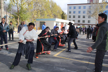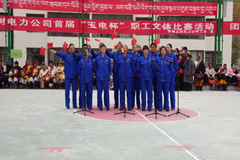 10月23日上午9點(diǎn),伴隨著雄壯高亢的《運(yùn)動員進(jìn)行曲》,青海玉樹電力公司11支職工代表隊的參賽選手組成整齊有序的方陣,邁著矯健的步伐步入賽場。公司黨委書記、總經(jīng)理白瑪然丁致開幕辭,他指出:為進(jìn)一步樹立玉樹電力公司的良好形象,加大公司企業(yè)文化建設(shè)力度,促進(jìn)公司精神文明建設(shè),決定恢復(fù)因玉樹地震停辦五年之久的職工文體競賽活動,通過舉辦本屆“玉電杯”文體競賽活動,要加快構(gòu)建健康、文明、和諧、向上的公司文化氛圍,豐富廣大干部職工的業(yè)余生活,為大家提供一個充分展示自己特長和才華的平臺,讓大家在活動中體驗(yàn)合作與創(chuàng)造,體驗(yàn)成功與歡樂,從而提高自己的綜合素養(yǎng),成為公司發(fā)展的有用人才;要著力促使單位之間、職工之間更加團(tuán)結(jié)、更加和諧,更具凝聚力,著力提高干部職工的團(tuán)隊精神理念,增強(qiáng)干部職工的集體榮譽(yù)感,增強(qiáng)職工的凝聚力和向心力,促進(jìn)公司的生產(chǎn)經(jīng)營發(fā)展;要初步選拔出優(yōu)秀人才組建公司文藝、體育隊伍,以代表公司參加集團(tuán)公司、上級有關(guān)單位和部門舉辦的各項(xiàng)文體活動,塑造公司良好形象。隨后,玉樹州總工會副主席焦海寧宣布首屆“玉電杯”職工文體比賽活動開幕。